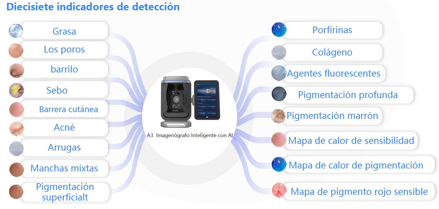 Lleva tu clínica al siguiente nivel con el A3 Imagenógrafo Inteligente con IA, la herramienta que transforma la consulta en una experiencia visual, profesional y convincente. Gracias a su avanzada inteligencia artificial, filmación 3D y 8 tecnologías de imagen espectral, analiza con precisión más de 30 parámetros de la piel y el cuero cabelludo en segundos.