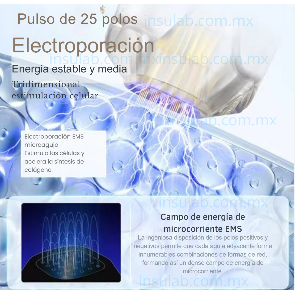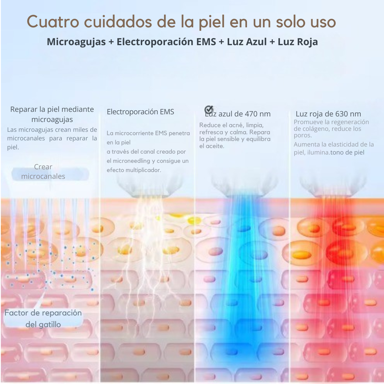 Su sistema combina microagujamiento controlado, terapia LED y electroporación, permitiendo optimizar protocolos de rejuvenecimiento facial, mejora de textura y penetración de activos cosméticos, sin recurrir a procedimientos invasivos.
