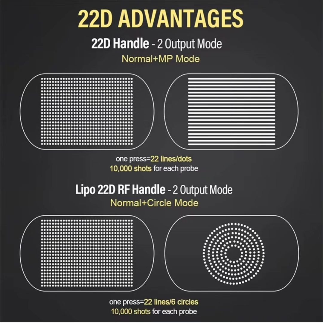 El equipo HIFU 22D viene con 2 cabezales estándar: uno de 13D (multilíneas) y otro de 18D (Liposonix).