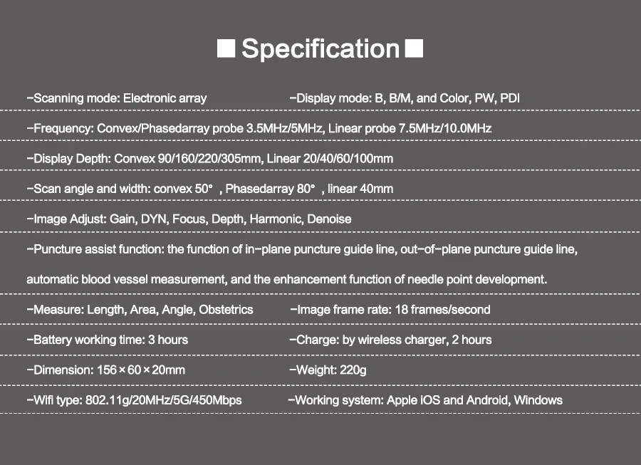 Ultrasonido Importado a Color inalámbrico Wifi, Sonda 3 en 1, 3,5 MHz/5MHz, convexo/7,5 MHz, sonda lineal, compatible con iOS, Android y Windows